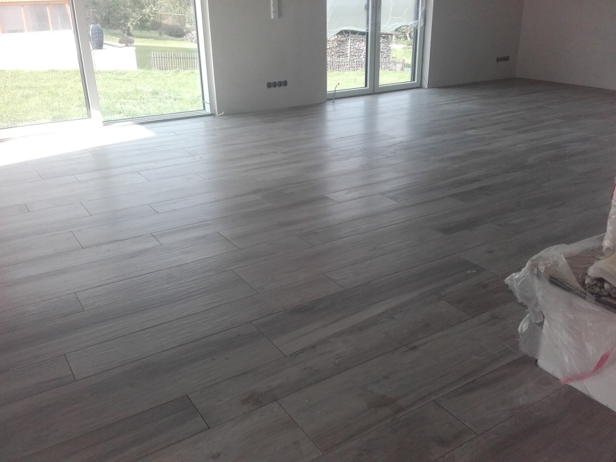 Strahlt die Wärme von natürlichem Holz aus ist aber Kratz-,Stoß- und Wasserfest wie eine Fliese. Noch dazu mit Fußbodenheizung ein super Wärmespeicher.